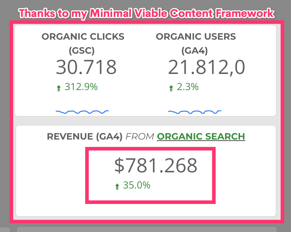 Hey Reader, A B2B tech client was struggling with organic traffic and revenue. Leadership was skeptical about content marketing. Their words, not mine: "Amazing to see organic still pulls in numbers even though we had a slower month." (Quick ask, I also posted about this on LinkedIn. A quick like and short comment would be appreciated!) I suggested they try my Minimal Viable Content (MVC) strategy. Customer-centric: We dug deep into customer dreams and frustrations. High-impact focus: Quality...